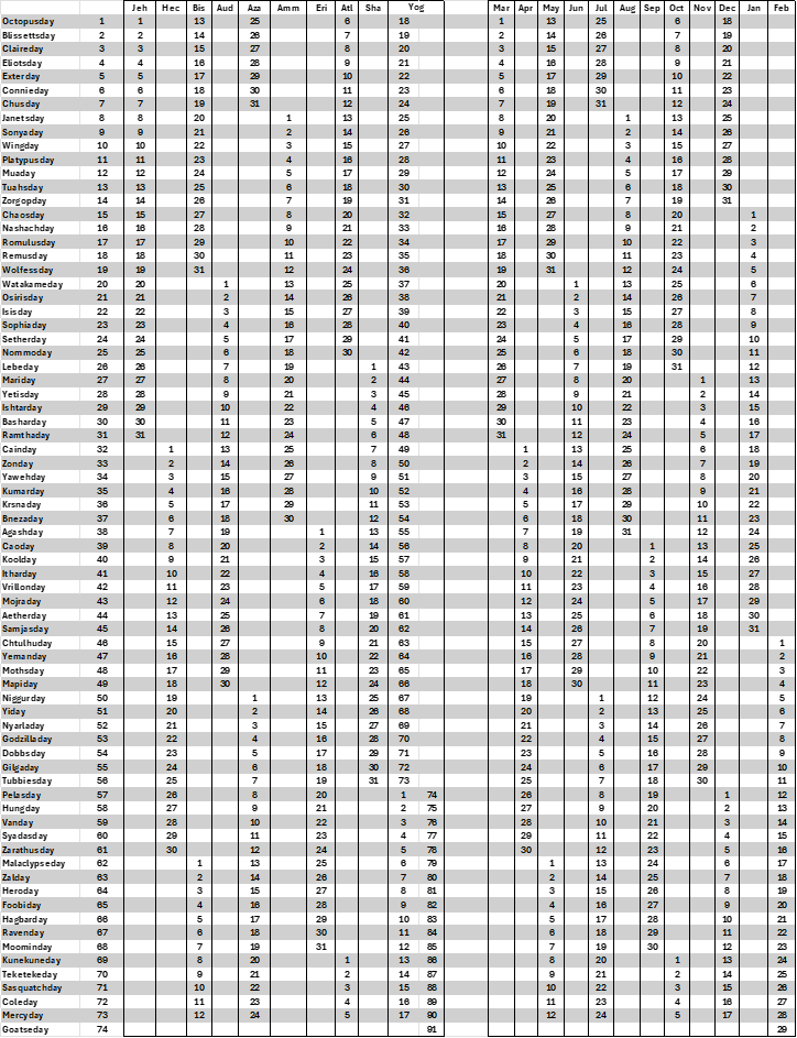 5 – Azathember, to Azathoth, 31 days (July 1 – July 31)